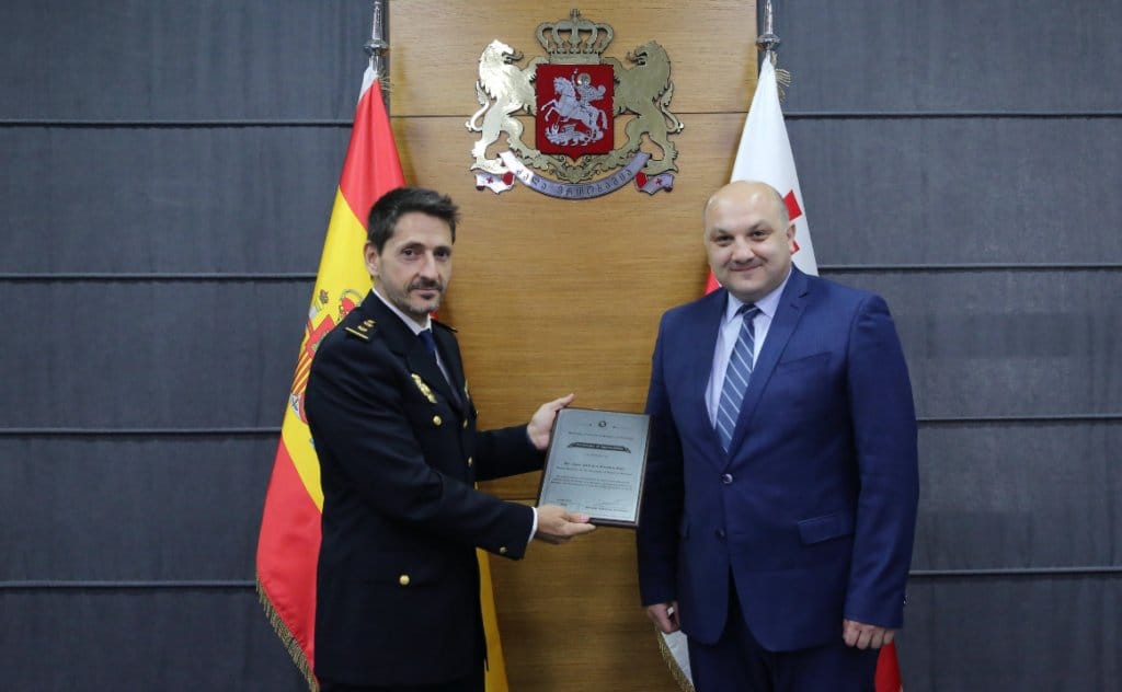 შინაგან საქმეთა მინისტრის მოადგილემ, ალექსანდრე დარახველიძემ ესპანეთის სამეფოს პოლიციის ატაშე საქართველოში ხუან ალკოლეა რუისი საქართველოს შსს-სა და ესპანეთის სამეფოს შინაგან საქმეთა სამინისტროს შორის სამართალდაცვით სფეროში მჭიდრო და წარმატებული თანამშრომლობის განვითარებაში მნიშვნელოვანი წვლილის შეტანისათვის „მადლობის სიგელით“ დააჯილდოვა. ინფორმაციას ამის შესახებ შსს ავრცელებს.