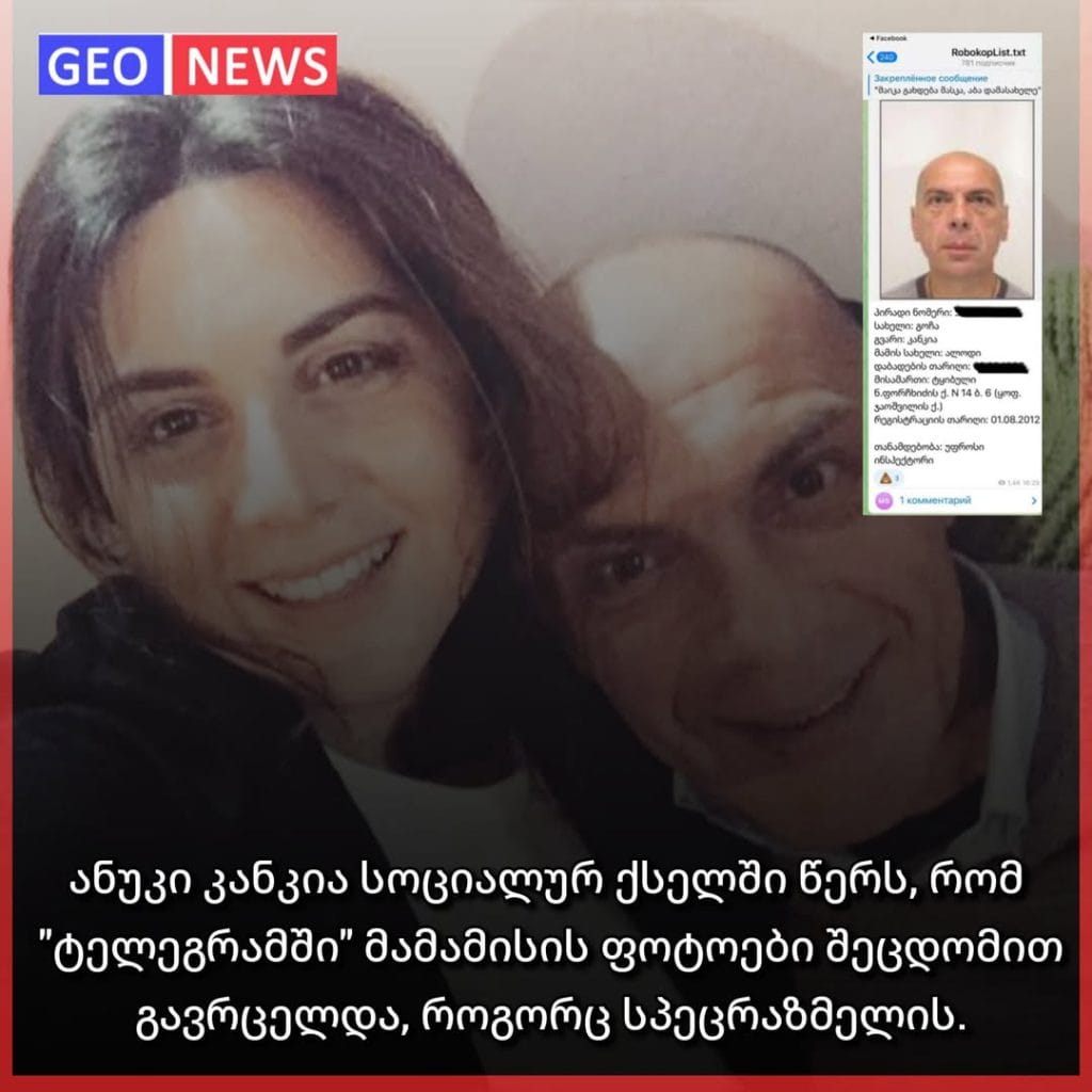 „გამარჯობა, პირველ ფოტოზე მე და 59 წლის მამაჩემი გოჩა კანკია ვართ. მეორე ფოტოზე, რომელიც ტელეგრამში გავრცელდა, ასევე მამაჩემი გოჩაა, თუმცა პირადობის ნომერი, დაბადების თარიღი და მამის სახელი სხვისია.