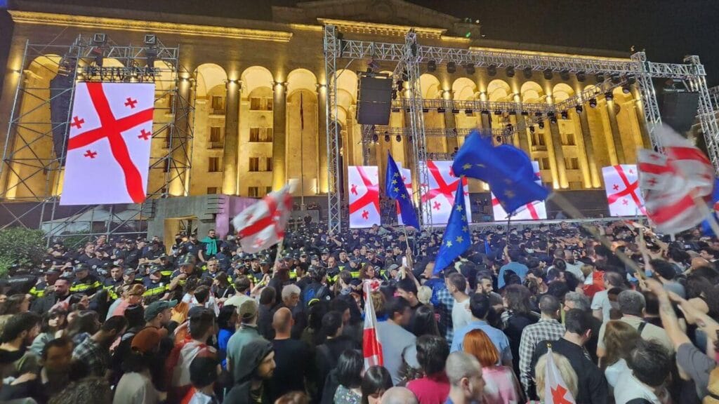„უცხოური გავლენის გამჭვირვალობის შესახებ“ კანონპროექტის წინააღმდეგ აქციის მონაწილეები თბილისის ქუჩებში გააგრძელებენ პროტესტს.