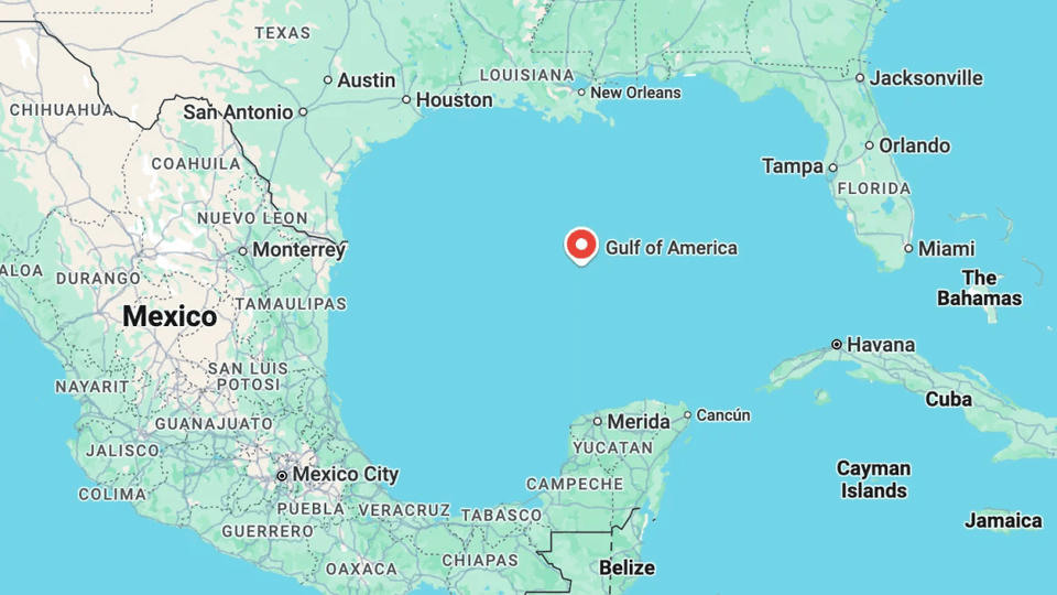 „გუგლ მეფის“ აშშ-ში დარეგისტრირებული მომხმარებლებისთვის, წარსულში „მექსიკის ყურით“ ცნობილი ტერიტორია, „ამერიკის ყურის“ სახელწოდებით გამოჩნდა.