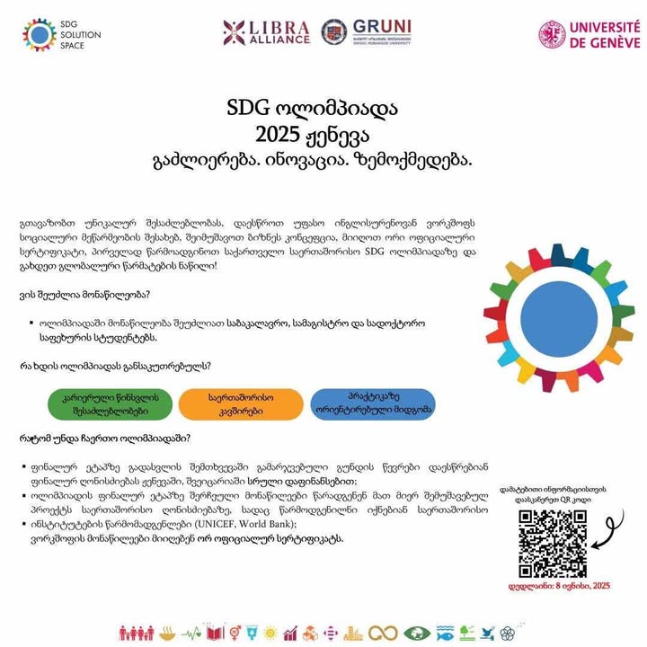 თუ ხარ საბაკალავრო, სამაგისტრო ან სადოქტორო საფეხურის სტუდენტი, შესაძლებლობა გაქვს, გახდე მდგრადი განვითარების მიზნების (SDG) ოლიმპიადის მონაწილე ჟენევაში, სრული დაფინანსებით