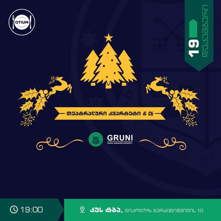 უნივერსტეტის სტუდენტებს გელოდებით ოტიუმში, სადაც დაგხვდებათ ჯადოსნური საღამო, საახალწლო განწყობა და მრავალფეროვანი შოუპროგრამა.