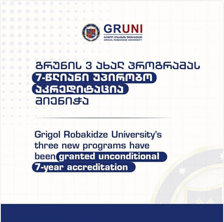 Three English-language higher education programs of Grigol Robakidze University have been granted unconditional 7-year accreditation: