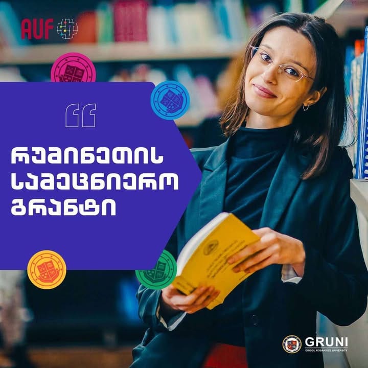 რუმინეთის მთავრობის, საგარეო საქმეთა სამინისტროსა და ფრანკოფონიის საუნივერსიტეტო სააგენტოს დაფინანსებით, „ეუჟენ იონესკუს” კვლევითი ფონდი სთავაზობს გრიგოლ რობაქიძის სახელობის უნივერსიტეტის ყველა მიმართულების დოქტორანტს, ისარგებლოს სამთვიანი კვლევებითი მობილობით (01/05/2025 – 31/07/2025) რუმინეთის პარტნიორ ერთ-ერთ უმაღლეს სასწავლებელში.