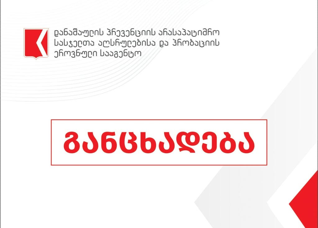 დანაშაულის პრევენციის, არასაპატიმრო სასჯელთა აღსრულებისა და პრობაციის ეროვნული სააგენტო ეხმიანება გავრცელებულ დეზინფორმაციას, სააგენტოდან თანამშრომლების თითქოსდა პოლიტიკური ნიშნით გათავისუფლების შესახებ, – ამის შესახებ ნათქვამია სააგენტოს მიერ გავრცელებულ განცხადებაში.