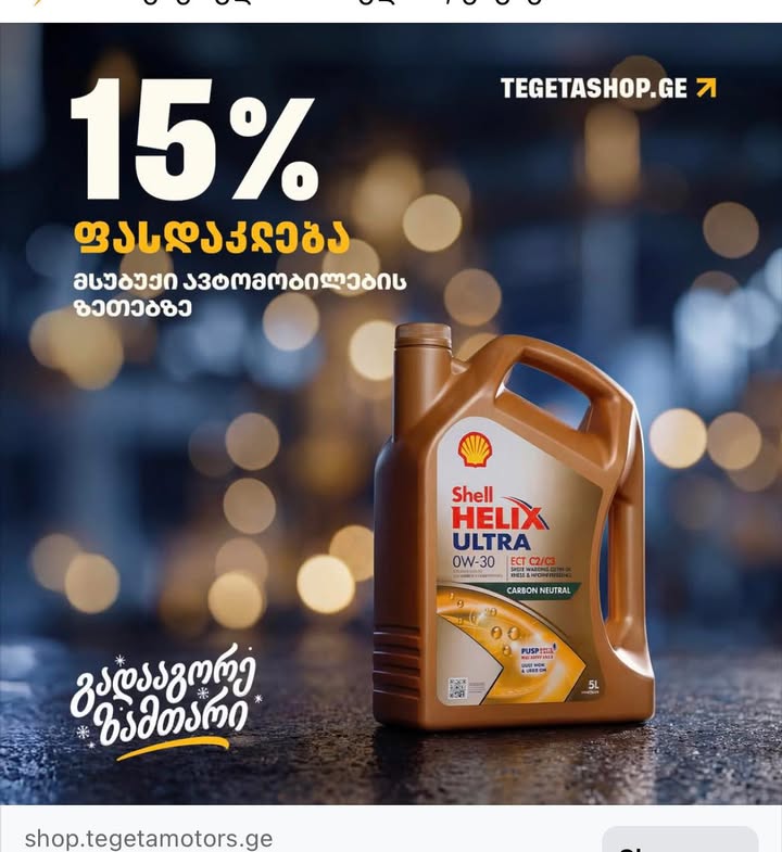 28 თებერვლის ჩათვლით, ეწვიე Tegetashop.ge-ს და შეიძინე მსუბუქი ავტომობილის ძრავის ზეთები 15%-იანი ფასდაკლებით.