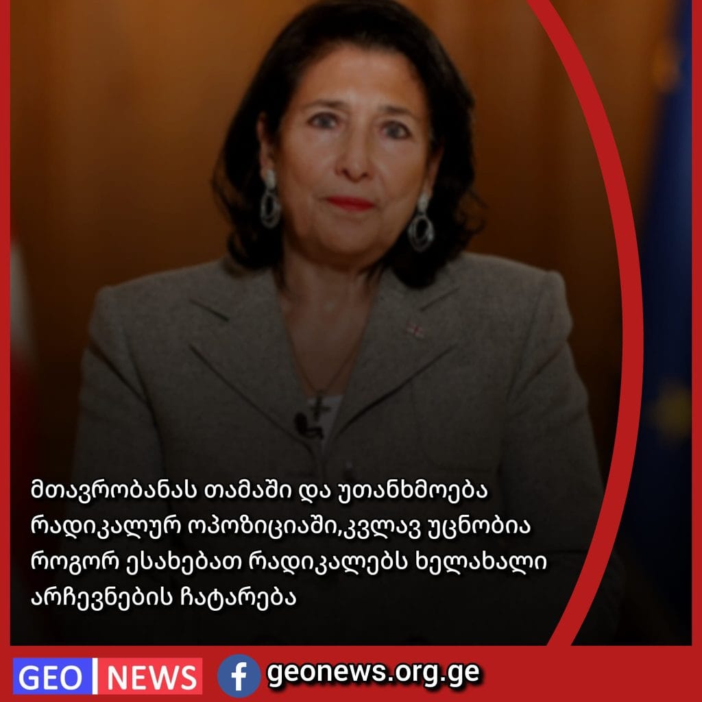 აქციებზე ჩნდება, ქვეყნის იმიჯს აზიანებს, დასავლელ ლიდერებს ესაუბრება და ახალი არჩევნებიც უნდა, თუმცა ამ დრომდე დუმს და ვერ აკონკრეტებს კონსტიტუციის დარღვევაში მხილებული სალომე ზურაბიშვილი როგორ ესახება ახალი არჩევნების ჩატარება, იმ ფონზე, როცა მოსახლეობის დიდმა ნაწილმა მხარი სწორედ ,,ქართულ ოცნებას” დაუჭირა და თავად მმართველი გუნდი ახალი არჩევნების ჩატარების აუცილებლობას ვერ ხედავს.