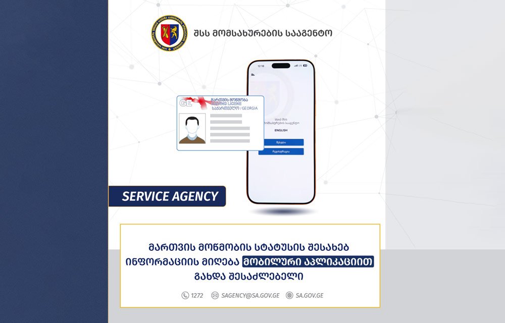 მომსახურების სააგენტოს აპლიკაციაში – Service Agency რეგისტრირებულ პირებს, აპლიკაციის განახლების შემდეგ, უკვე შეუძლიათ მიიღონ ინფორმაცია სატრანსპორტო საშუალების მართვის უფლების სტატუსის და მინიჭებული ქულების შესახებ, – ინფორმაციას მომსახურების სააგენტო ავრცელებს.