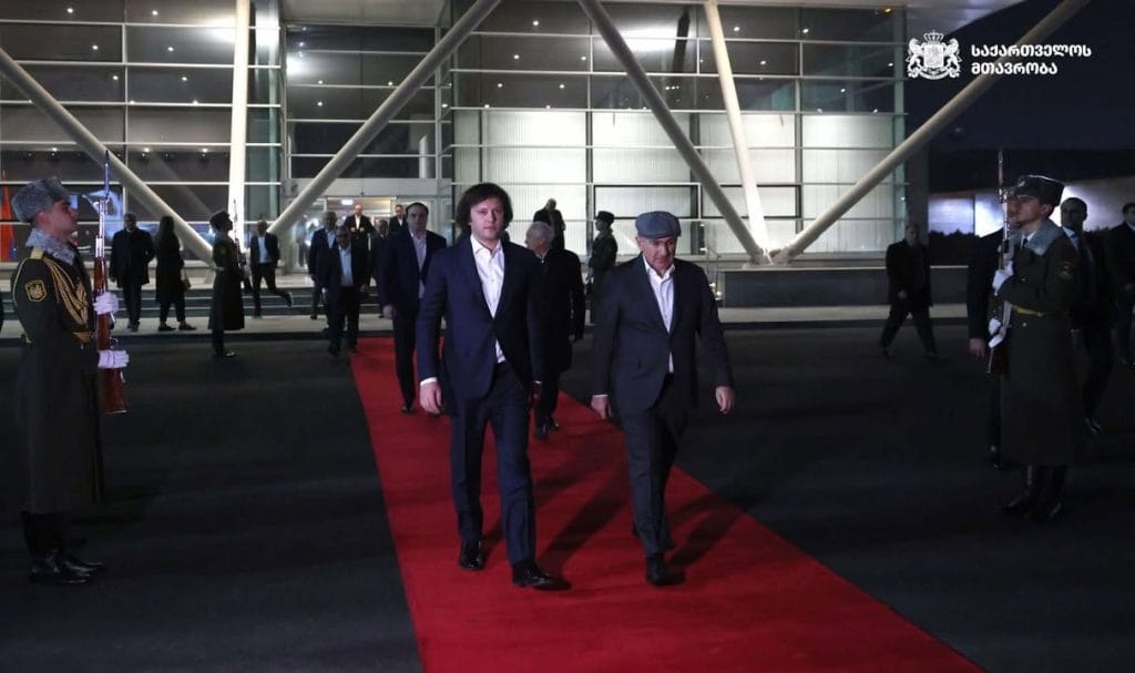 ერევნის ზვართნოცის საერთაშორისო აეროპორტში საქართველოს მთავრობის მეთაური სომეხმა კოლეგამ, ნიკოლ ფაშინიანმა გააცილა.