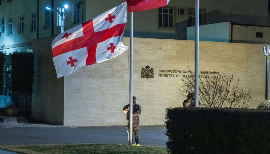 თავდაცვის უწყების შენობებსა და სამხედრო ქვედანაყოფებში სახელმწიფო დროშები დაეშვა.