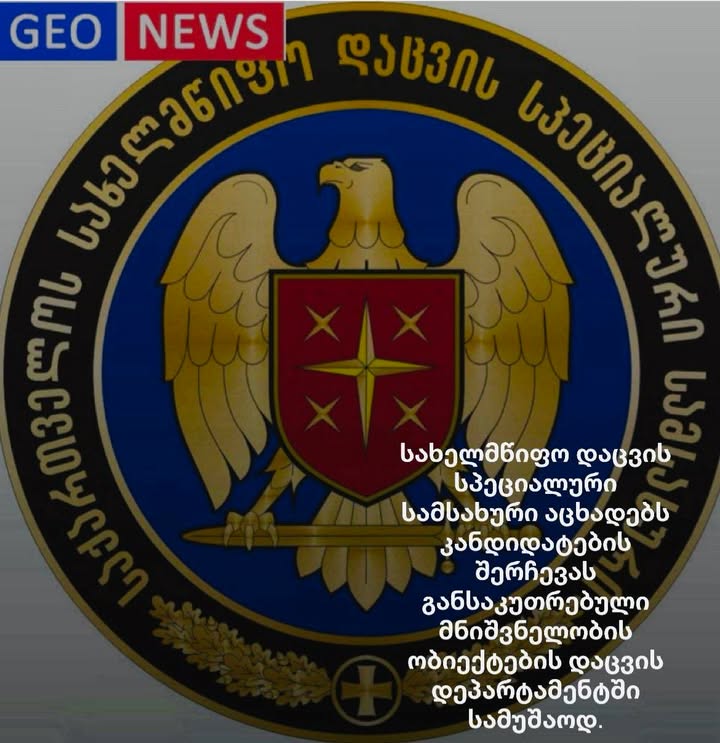 ,,სახელმწიფო დაცვის სპეციალური სამსახური აცხადებს კანდიდატების შერჩევას განსაკუთრებული მნიშვნელობის ობიექტების დაცვის დეპარტამენტში სამუშაოდ.