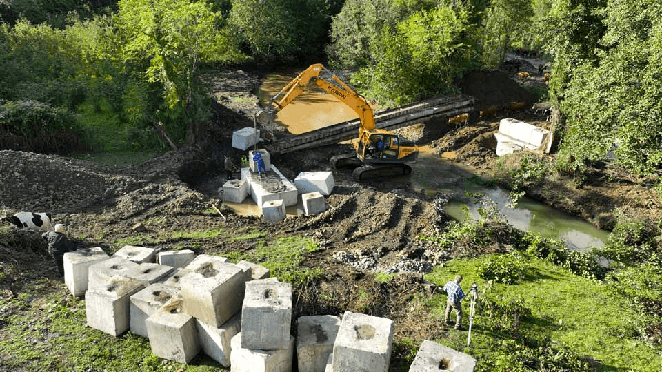 საჯავახო-ჩოხატაური-ოზურგეთი-ქობულეთის გზის 32-ე კმ-ზე დროებითი ხიდის მოწყობა მიმდინარეობს