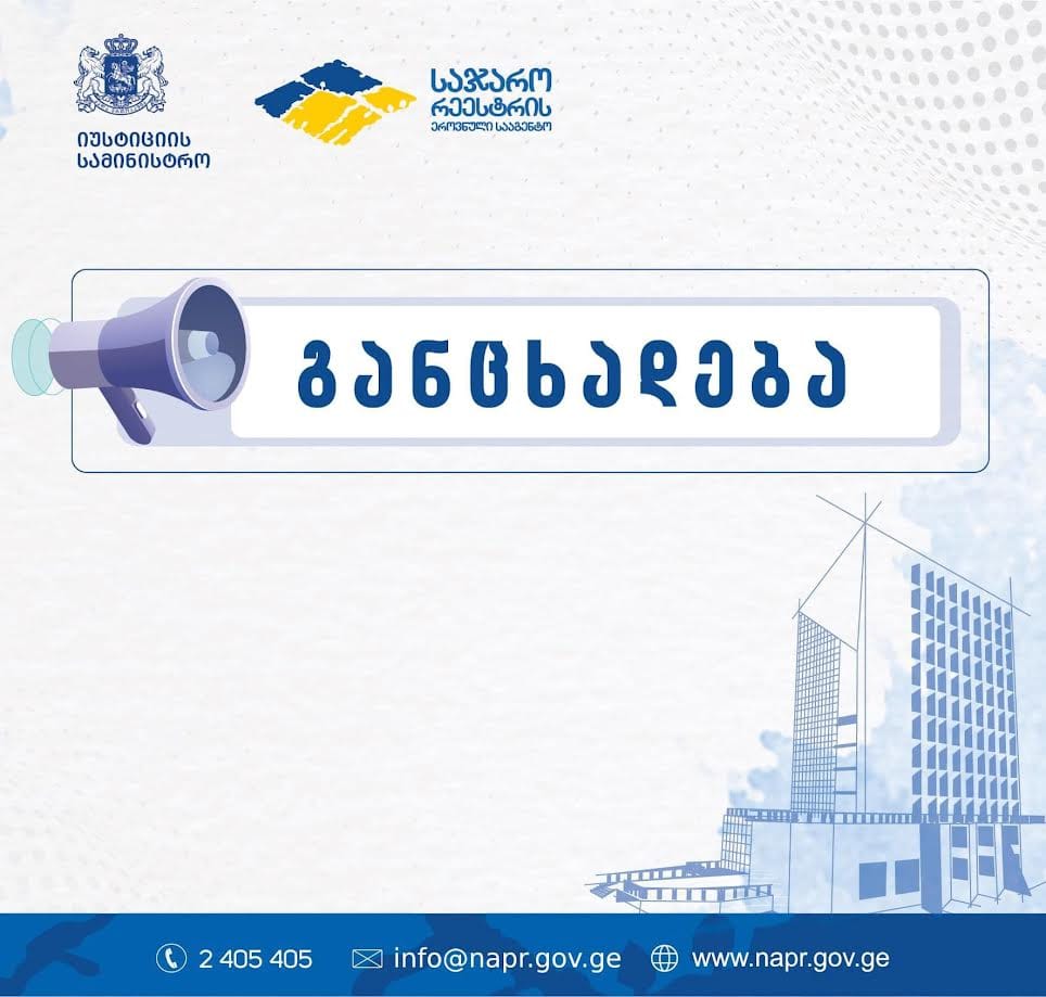 საჯარო რეესტრის ეროვნული სააგენტო განცხადებას ავრცელებს