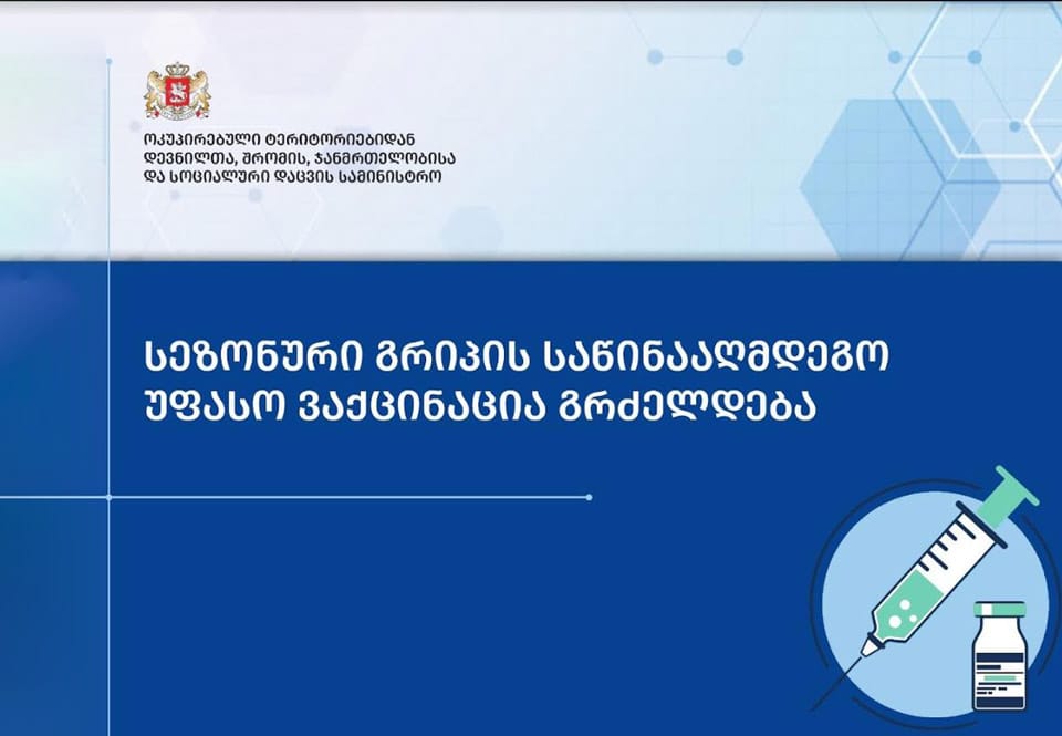 სეზონური გრიპის საწინააღმდეგო უფასო ვაქცინაცია გრძელდება. საქართველოს ჯანდაცვის სამინისტროს ცნობით, იმუნიზაციის სახელმწიფო პროგრამის ფარგლებში მსურველებს შესაძლებლობა აქვთ, ვაქცინა ქვეყნის მასშტაბით გაიკეთონ.