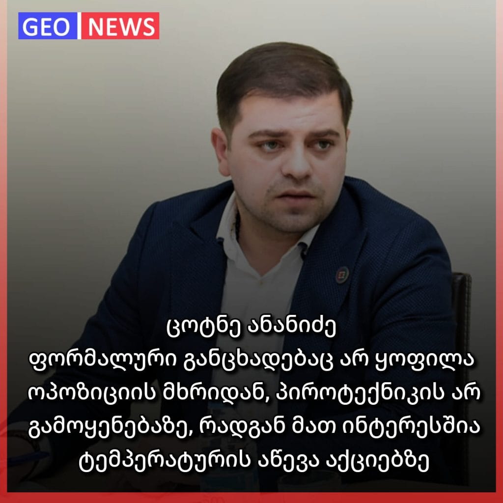 ცოტნე ანანიძე : ,,ფორმალური განცხადებაც არ ყოფილა ოპოზიციის მხრიდან, პიროტექნიკის გამოყენებისაგან თავის შეკავებაზე, რადგან მათ ინტერესში აქციებზე ტემპერატურის აწევაა”