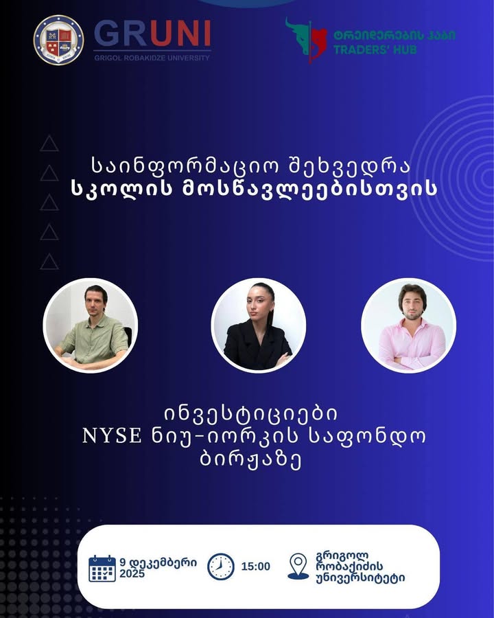 9 დეკემბერს, გრუნიში, ჩატარდება თეორიულ-პრაქტიკული ტრენინგი, რომლის ფარგლებში, საფონდო ბირჟაზე ინვესტირების უახლეს პრაქტიკულ გამოცდილებას გაგიზიარებენ